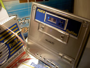 MSI storageThere are some really interesting novelties of the storage world. First, optical drives have acquired the SATA interface, which is indeed convenient and will allow to get rid of the old cables in the system. ![]() XA52P (combo) and DRA8P (DVD+R/+RW/-R/-RW CD-R/RW) Another curiosity - "Mega Cash", a miniature USB storage based on a 1.5 GB hard disk without additional power supply. A really light and truly miniature thing. It's a pity I didn't put a cigarette box - the storage device would easily fit inside it. ![]() MSI Mega Cash: USB2.0, 1,5Gb ExoticsThis is a product of the "new markets" category, or no analogs so far. Everybody knows portable DVD players by Sony, Sharp, Panasonic etc. quite well... But who on earth would need a product costing $1000 to view DVDs in the stereo mode on a small screen? The quality of Mpeg2(DVD), Mpeg4 and even AVI formats is hardly distinguishable on such screens. That's what MSI just looked closer upon and produced the "Portable AV Player". The current capacity of the hard disk is 20 GB. The Mpeg4, AVI, Mp3 formats and viewing photoalbums are supported. This capacity is enough to store 15 films, or about 4000 songs in the MP3 format. A really nice thing! ![]() Rita Chiu demostrating the "Portable AV Player" We asked to switch on the device and demostrate the image quality: