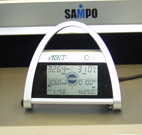 Note that Abit decided not to develop a board with simultaneous support for DDR and DDR2 - Intel warns it won't be responsible for unstable operation of such boards. But the company engineers invented quite a tricky thing: Guru Clock. This is an external LCD where various system information is displayed (temperature of the processor, system, environment, processor's clock speed, voltage levels, time etc.). Besides, the device can give warning of a newly arrived email or Windows Messenger message.