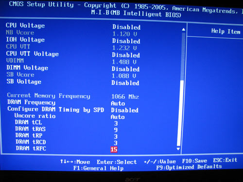 All the additional items are in a separate box. ![]() Their quantity does not match the status of a high-end product. ![]() In particular, the user's guide is thin enough, and the CD offers no third-party software. We also note that no matching power adapters are added to the 6 SerialATA cables. ![]() Besides, the board supports six additional USB 2.0 ports, but the package bundle offers merely one bracket for two USB ports. ![]() We are not yet rating the package bundle but would rather wait until the board appears in the retail. Quite probably, the "price/abundance of the package bundle" ratio will be more attractive than that for the specimen which we received for tests. ECS X58B-A: Board LayoutThe PCB design of ECS X58B-A is free from any specific traits. Like most products based on the Intel X58 chipset, this board uses six DIMM slots, and the CPU socket LGA1366 is turned by 90 degrees. ![]() It is really convenient to assemble a system based on the X58B-A: the power connectors are positioned over the board's edge, with the latches of DIMM slots not blocked by a PCI Express video card. By the way, we should note that the board uses an optional Molex power connector (near the north bridge). Near the CPU socket, there is a 4-pin CPU_FAN connector for a matching cooler. ![]() Along with it, the board has one more 4-pin connector (SYS_FAN; near the 7-stage indicator), as well as two 3-pin connectors: PWR_FAN on the left-hand edge, with NB_FAN near the north bridge. On the north bridge, there is a massive radiator connected to the radiator on the power supply module with a heat pipe. Also, using the heat pipe the heat from the south bridge is transferred to the north bridge. ![]() We should note that our specimen had a poor contact of the radiator with the chip of the north bridge. As a result, the system was running unstably under long loads. The problem was solved accidentally - with a can of beer placed for heating on the NB radiator. And even once the beer was used up, the system went on running stably. Evidently, the long-term pressing provided the best contact, and the thermal interface fixed the final position. Let's hope this flaw is related to our test specimen only. Under the north bridge, there are six 240-pin DIMM slots for DDR3 memory modules. They are partitioned into three groups of two slots, with the alternating colors. In the end, to enable the triple-channel mode, you've got to install modules into slots of the same color (an option with three modules). ![]() The board supports DDR3-800/1066/1333/1600 memory, and the maximum memory capacity makes 24 GB. Once power is applied to the board, a red LED near the main power socket lights up. There are two PCI Express x16 slots onboard (both with latches) which are meant for video cards. ![]() Besides, the board uses a pair of PCI Express x1 slots, one PCI, and one PCI Express x4 slots. Expansion optionsECS X58B-A uses the ICH10R south bridge with a radiator. In the end, the board supports 6 SerialATA II ports and allows merging disks into RAID arrays of levels 0,1,5, and 10. The ports are painted orange and orientated in parallel to the board's plane. ![]() Besides, the board supports two SerialATA links with the JMB362 controller made by JMicron whose matching ports have been brought over to the board's rear panel. We also note that the board supports neither ParallelATA nor FDD. Then, the board uses 12 USB2.0 ports: six on the rear panel, with 6 more plugged in with brackets (the board comes bundled with 1 bracket for 2 ports). Besides, the motherboard supports the IEEE1394 ("Firewire"). For that, there is an additional onboard VT6308P controller made by VIA. Therefore, the board offers support for 2 Firewire ports: one mounted on the rear panel, with the other one connected with a plate (available in the package bundle). ![]() ![]() ECS X58B-A offers 8-channel integrated Intel High Definition Audio, with ALC880S chip used as the codec. A few words on the network support: the board uses two high-speed Realtek RTL8111C (Gigabit Ethernet) network controllers connected to the PCI Express (x1) bus. ![]() ![]() Both the RJ-45 connectors are brought over to the rear panel which has the following configuration: ![]() Engineers at ECS have completely given up placing outdated LPT and COM ports on the board. However, one COM port has been implemented with a bracket which is missing in the package bundle. ECS X58B-A uses the only jumper: CLR_CMOS - to clear the CMOS settings (in the bottom left-hand corner). For the same purpose, there is a button on the rear panel. There are two more buttons to start-up and reboot the system: ![]() Besides, the board uses a 7-stage POST indicator: ![]() Now on to the BIOS settings. BIOSThe BIOS of ECS X58B-A is based on the AMI BIOS version, and its capacity is 16 Mbit. ![]() All the memory settings are gathered in the overclocking tools section: ![]() There is also a parameter that affects the performance - setting the memory operating frequency. ![]() Now move on to the section to do with the system monitoring. ![]() The board displays the current temperatures for the CPU, system, rotational speeds of all the fans, as well as voltage levels. However, the kit if the latter is incomplete: standard voltage are not traced. Note that the coolers plugged in to the 4-pin connectors are able adjusting the rotational speeds depending on the temperature of the CPU and the system, due to the SmartFan technology: ![]() The BIOS also gives access to tuning all the features of modern processors: ![]() Overclocking and stabilityPrior to moving to overclocking, let's look into the power converter. It uses a 6-phase power scheme, in which there are four 270 mkF and eleven 820 mkF capacitors. ![]() All the power components of the PWM are equipped with a radiator. A pack of overclocking tools: ![]() ![]() Here is a table:
